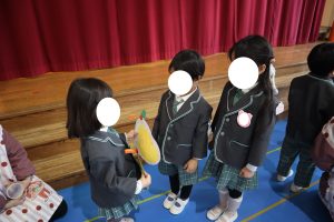 また年長さんが作ったプレゼント、年少・年中さんが作ったプレゼントを、各クラスの代表のお友達がそれぞれ渡してくれました🎁